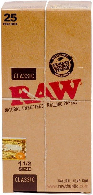 Raw Classic 1 1/2 Size Rolling Paper, 33 Count (Pack of 25)